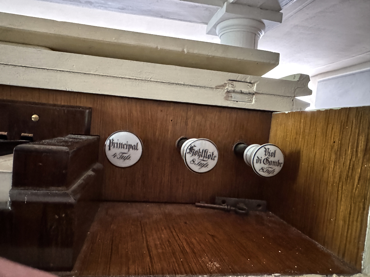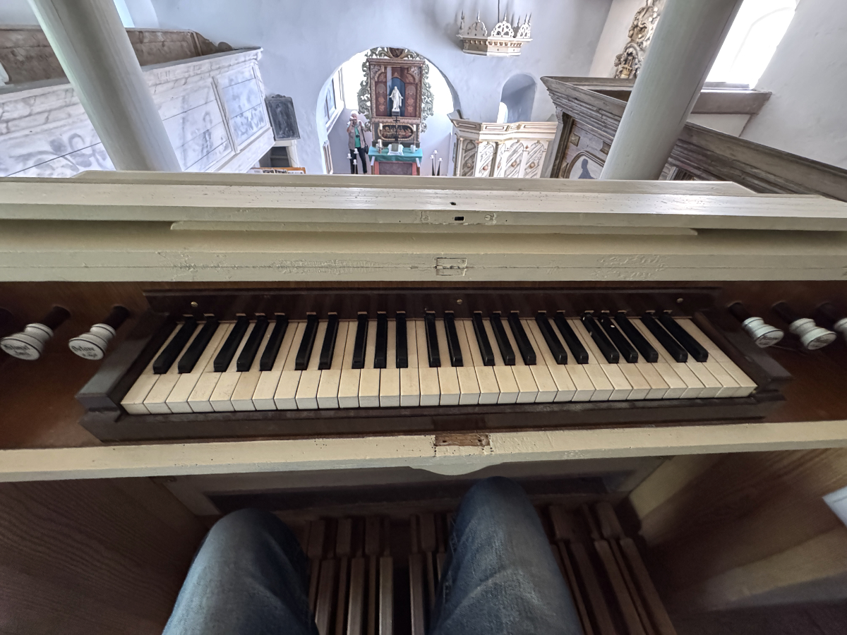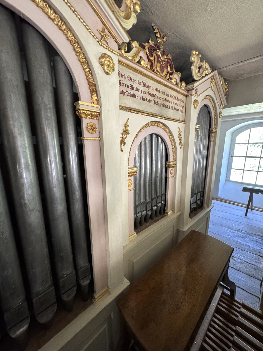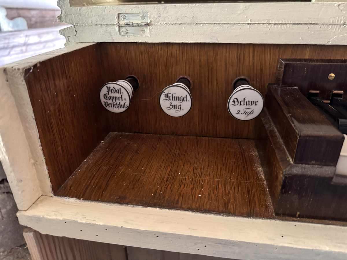 Die Orgel hat einen Blasebalg, der nicht getreten werden muss, sondern mit einem Seil gezogen wird. An der Orgel kann man lesen, wer in den ganzen Jahren alles den Balg gezogen hat.