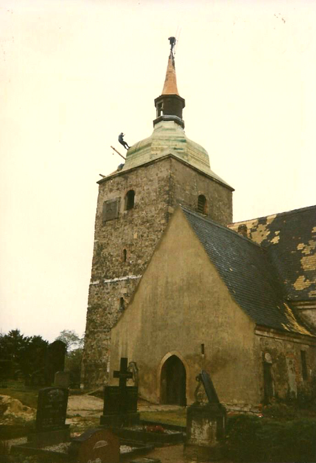 Matthias Vödisch (Bergsteiger) führte 1980 Reparaturarbeiten am Turmdach aus, dafür seilte er sich ab. Im Frühjahr 1990 hat ein Sturm das Turmdach stark beschädigt, auf einigen Quadratmetern fehlten Holzblanken und Dachschiefer. Das hatte zur Folge, dass auch die Glocken und die Orgel in Mitleidenschaft gezogen wurden. Im Vorderschiff der Kirche war eine Schwammbekämpfung notwendig und das nötige Geld für all diese Arbeiten fehlte.