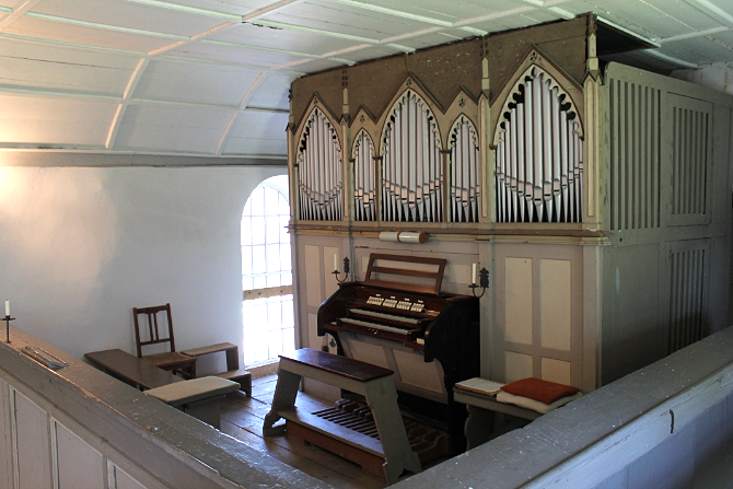Gerade wenn man eine oder zwei mechanische Koppeln einsetzte, waren die Orgeltasten nur noch mit viel Kraft zu drücken. Aber die Pneumatik hatte auch einen großen Nachteil: sie verzögerte merklich die Tonerzeugung. Aus diesem Grund werden heute kaum noch pneumatische Orgeln gebaut. Eine Uberraschung gab es noch, als durch den Restaurator alle Pfeifen ausgebaut waren und Gilbert Peikert dankenswerterweise den Putz an der Rückwand und Decke saniert hat: An der Decke tauchte ein Kassettenfeld auf, das nicht wie die übrige Kassettendecke im Kirchenschiff überstrichen worden war, sondern noch die ursprüngliche Bemalung mit Akanthusranken zeigt. Nun freuen wir uns auf die offizielle Einweihung durch ein festliches Orgelkonzert mit dem Dübener Kantor Norbert Britze, der mit Rühlmann-Orgeln besonders vertraut ist. (fk) - Quelle: KirchespielKalender März-Mai 2024